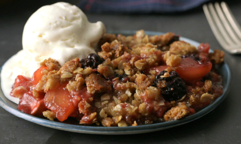 - Bake crisp for 25 to 30 minutes or until topping is brown and bubbling around edges.